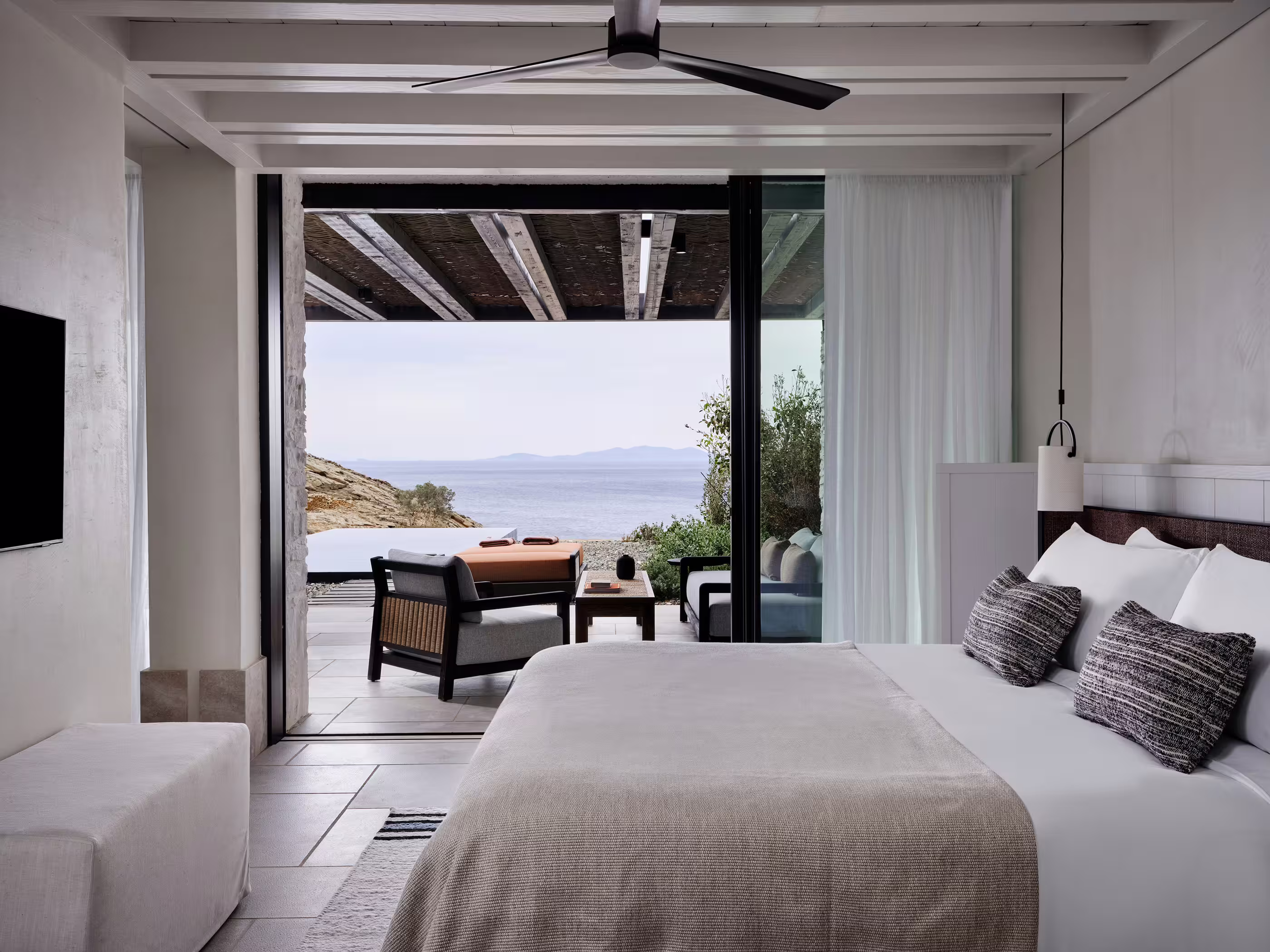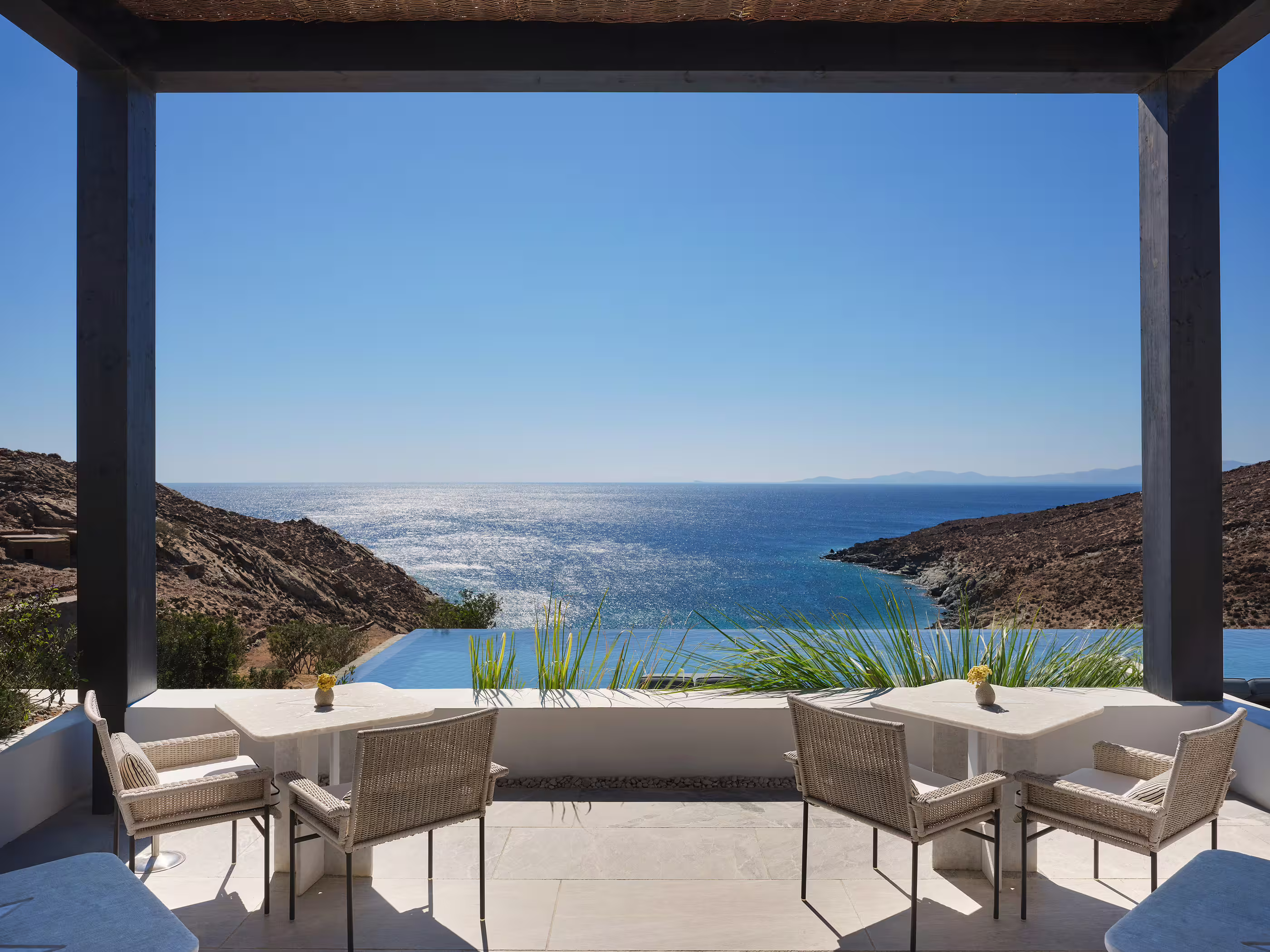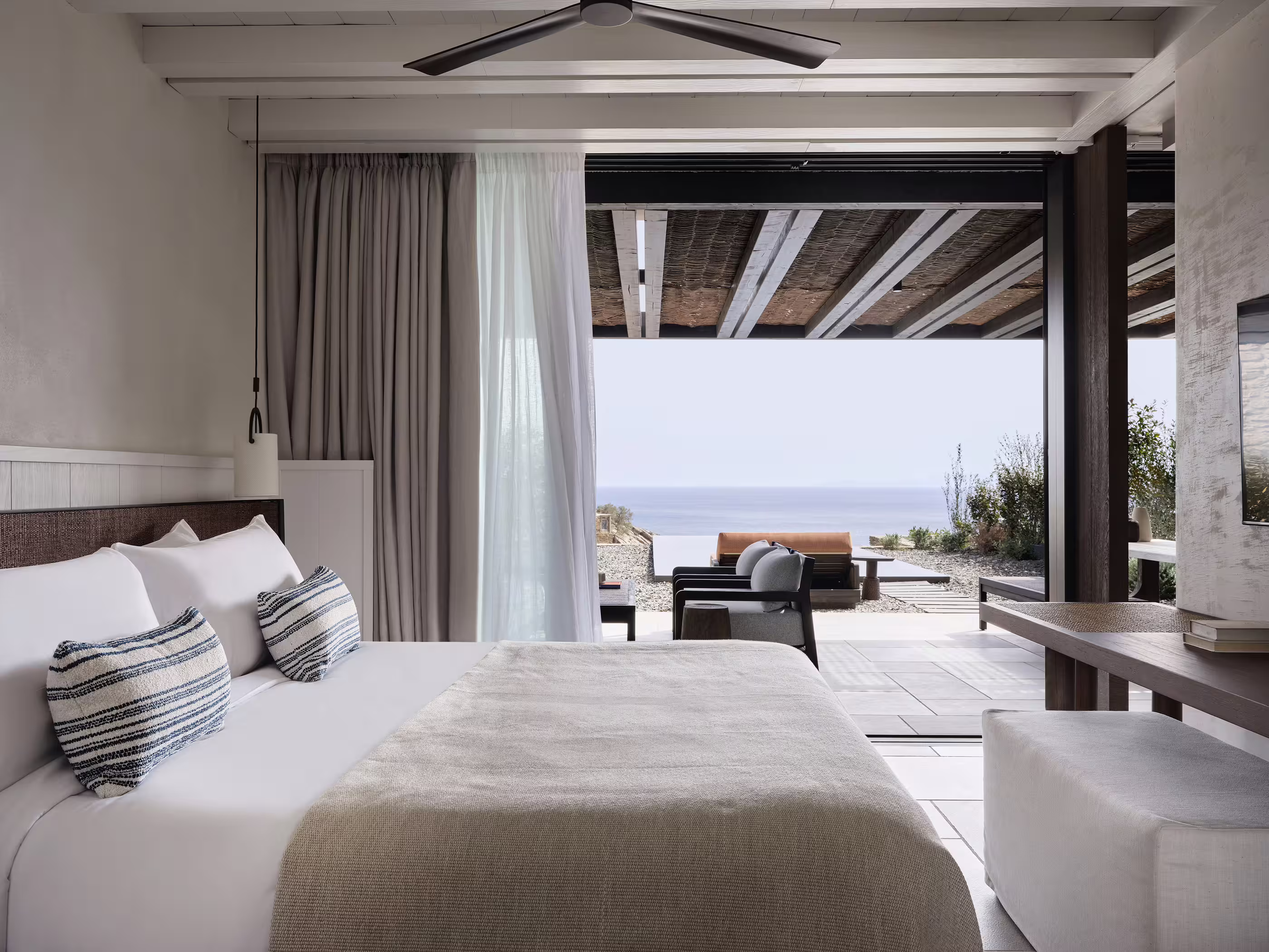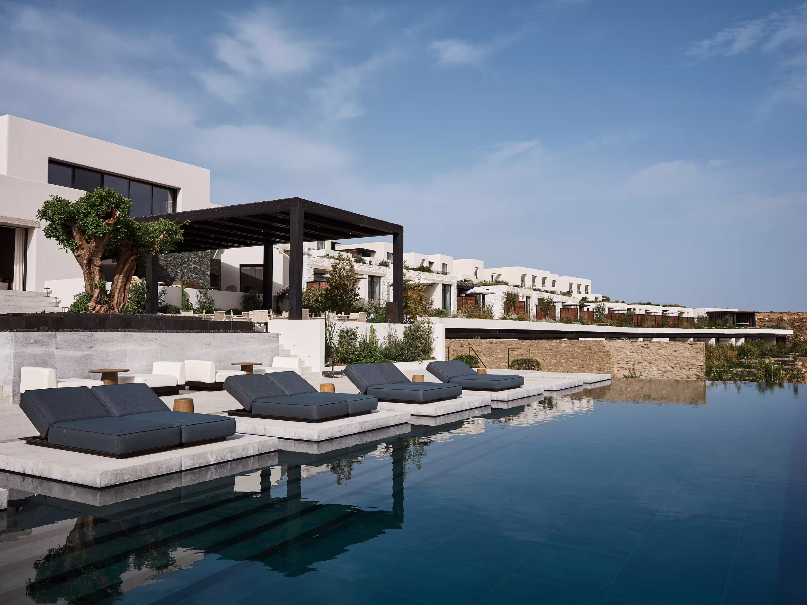 Nestled above the secluded Vourni Cove, Odera Tinos is a luxury, 5-star beachfront retreat that opened in 2024. Featuring 77 thoughtfully designed pool suites and rooms, this resort blends modern elegance with authentic island soul. Guests enjoy an indoor pool, outdoor pool, hidden chapel, spa and wellness centre, on-site restaurants and bars, and a private sandy beach with sunbeds. Just a short drive or scenic boat ride from Tinos Town and Mykonos, it offers serenity, style, and genuine hospitality.