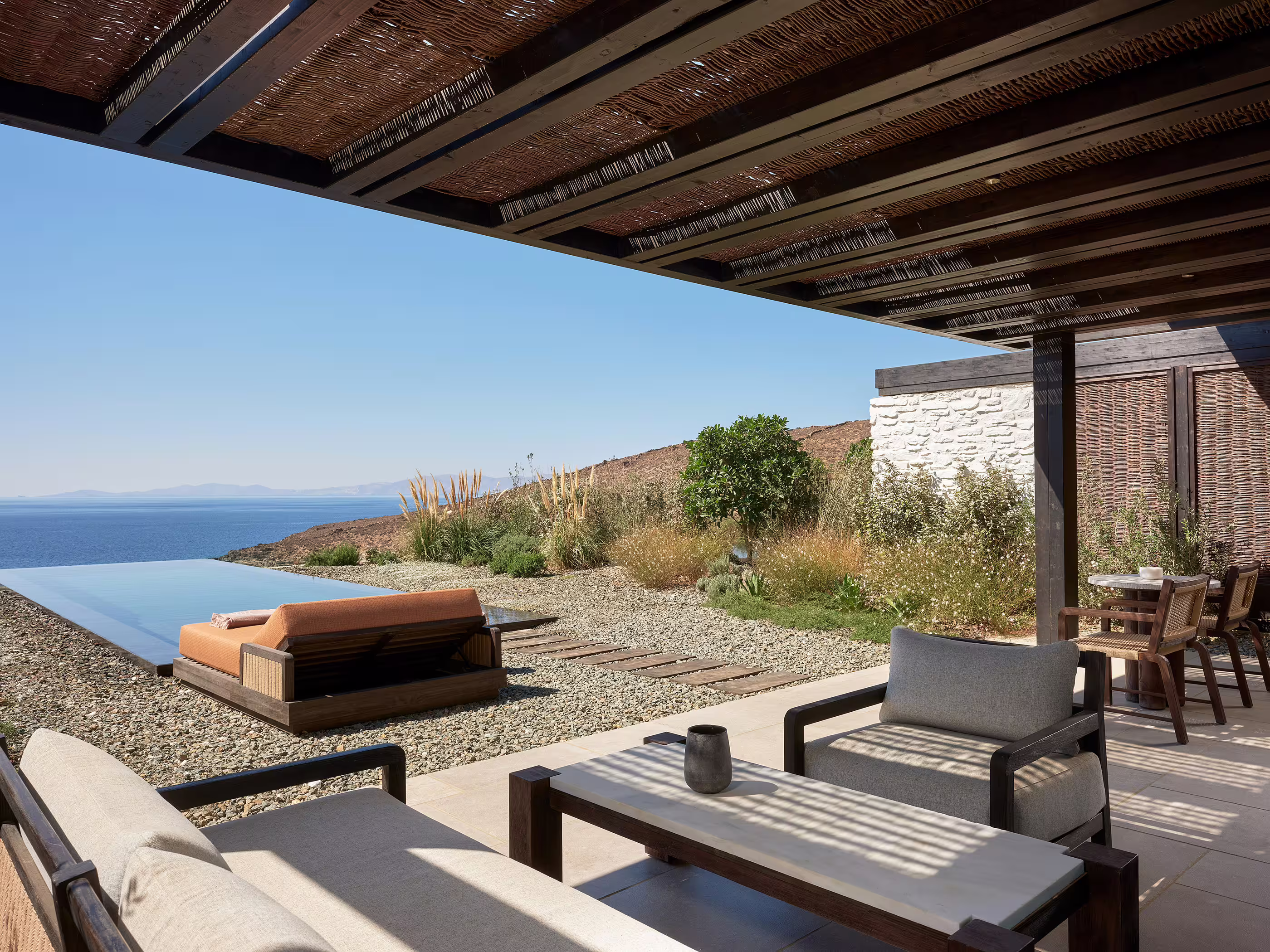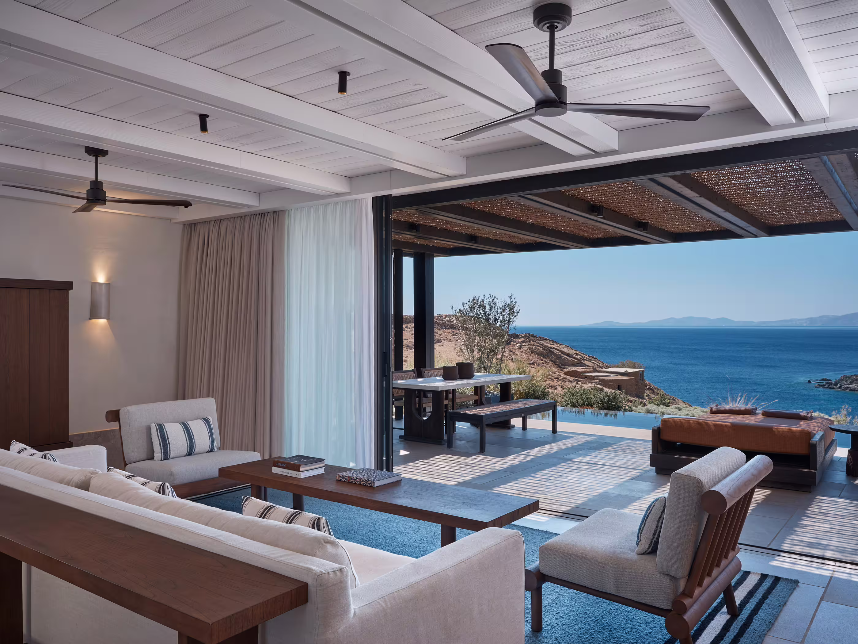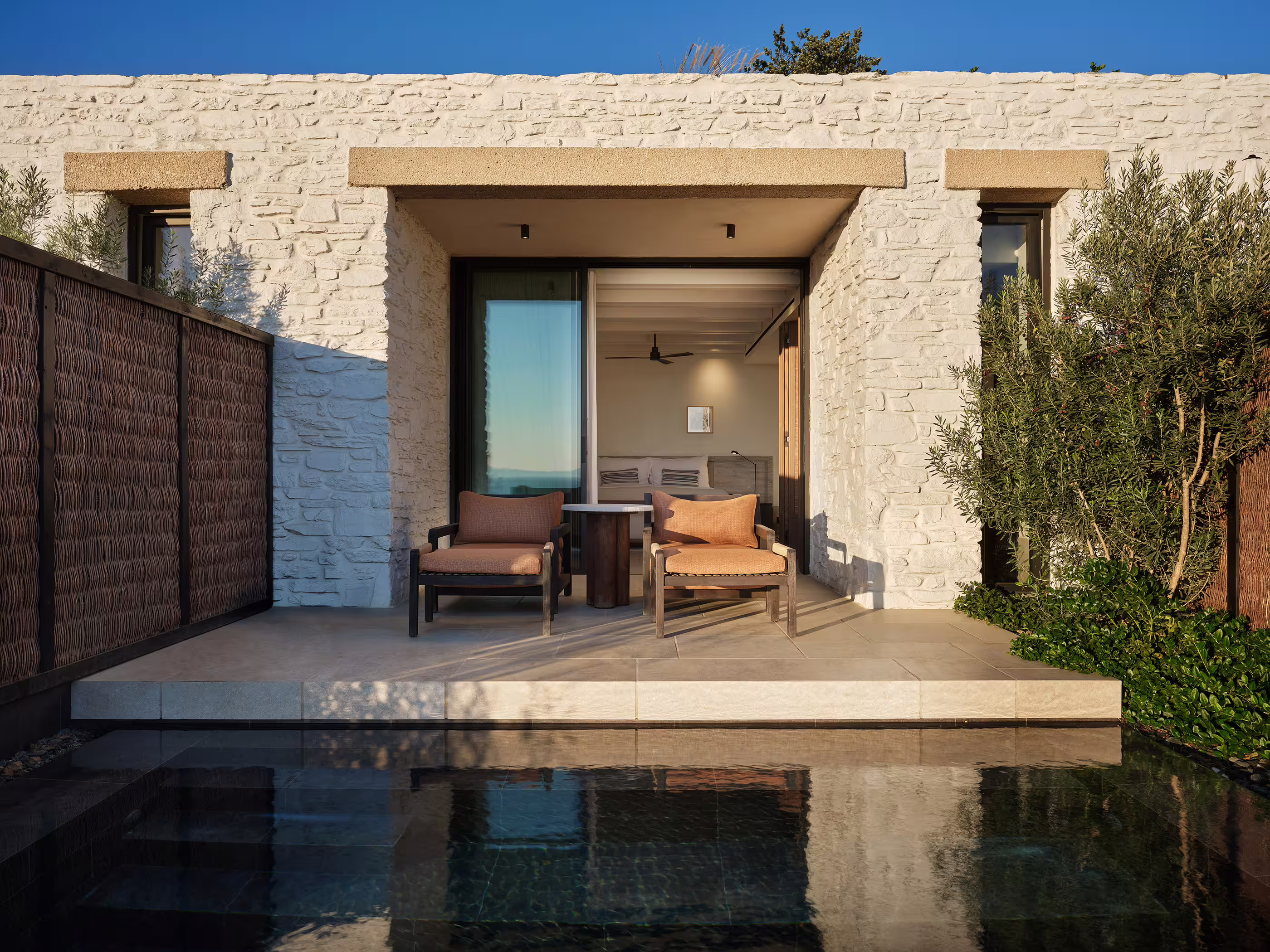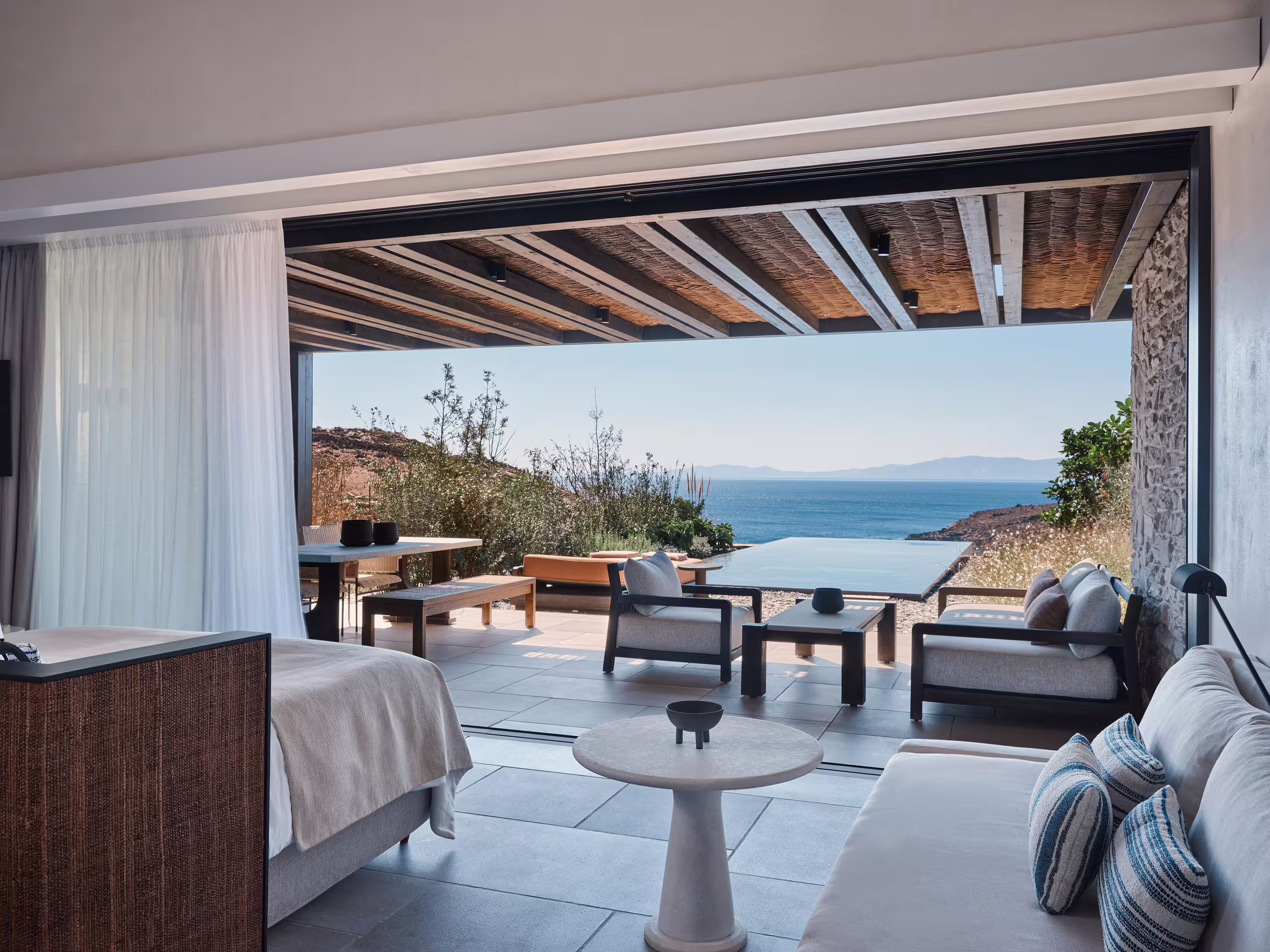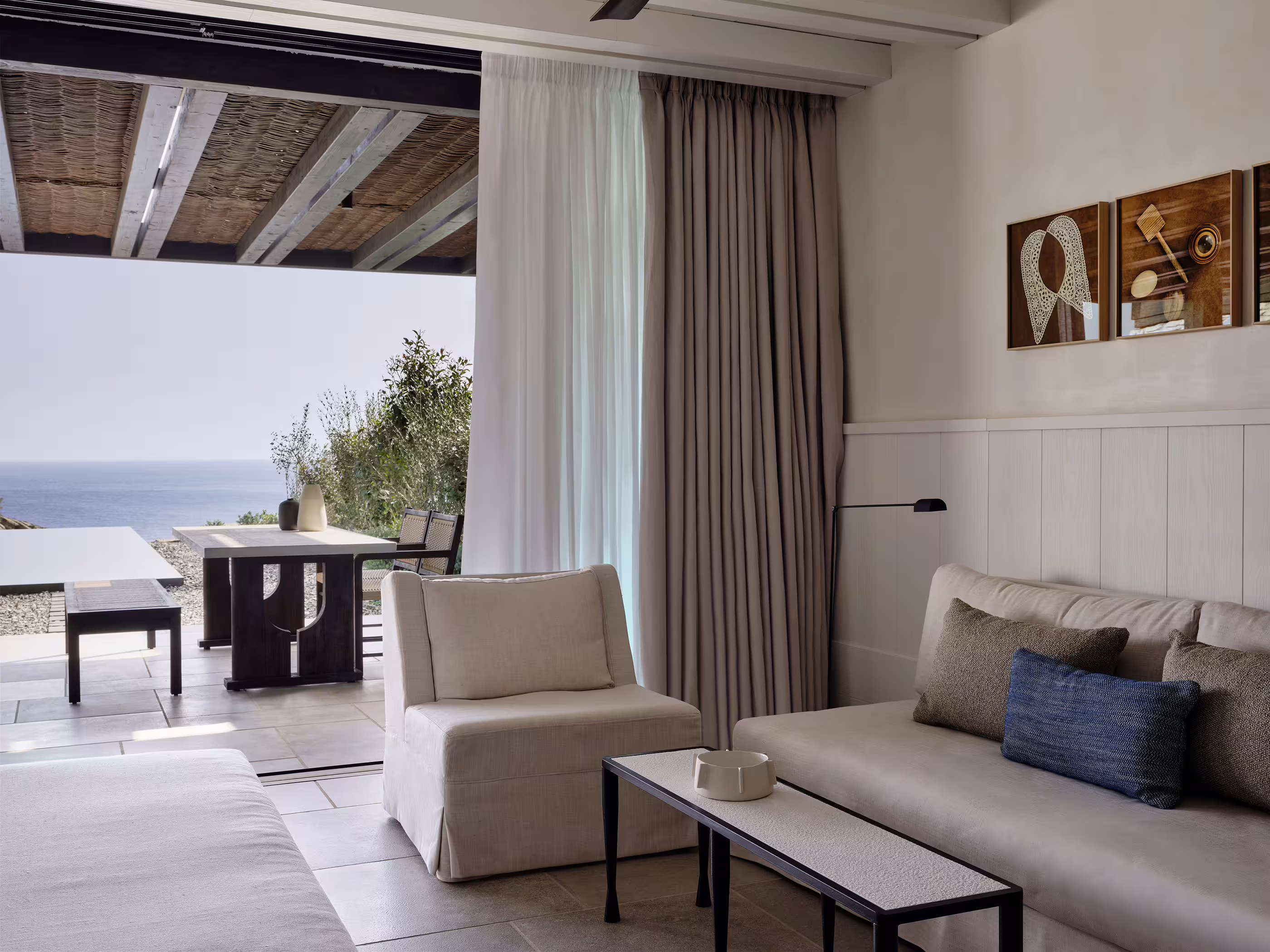 Nestled above the secluded Vourni Cove, Odera Tinos is a luxury, 5-star beachfront retreat that opened in 2024. Featuring 77 thoughtfully designed pool suites and rooms, this resort blends modern elegance with authentic island soul. Guests enjoy an indoor pool, outdoor pool, hidden chapel, spa and wellness centre, on-site restaurants and bars, and a private sandy beach with sunbeds. Just a short drive or scenic boat ride from Tinos Town and Mykonos, it offers serenity, style, and genuine hospitality.