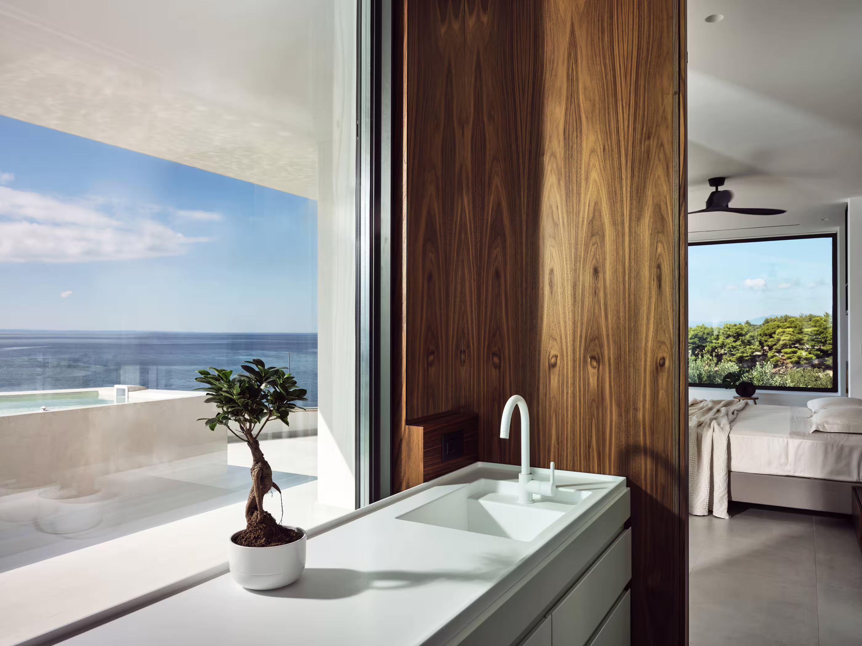 In complete harmony with its natural surroundings, Greek sunlight, and the presence of water, this unique villa is designed to make guests feel cozy from the very first moment. Located on a pristine cape at Lagomandra, Sithonia, Halkidiki, it blends advanced architectural techniques, high design, and elegance to offer a truly special experience.