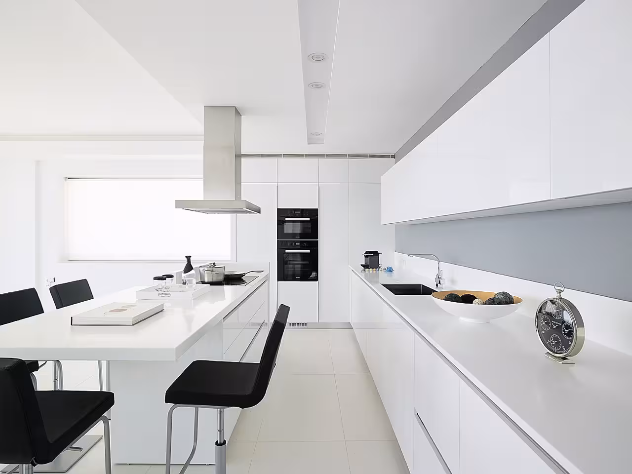 - Fully equipped spacious kitchen, a bar table witch 6 stools and a wooden designer table for up to 12 persons