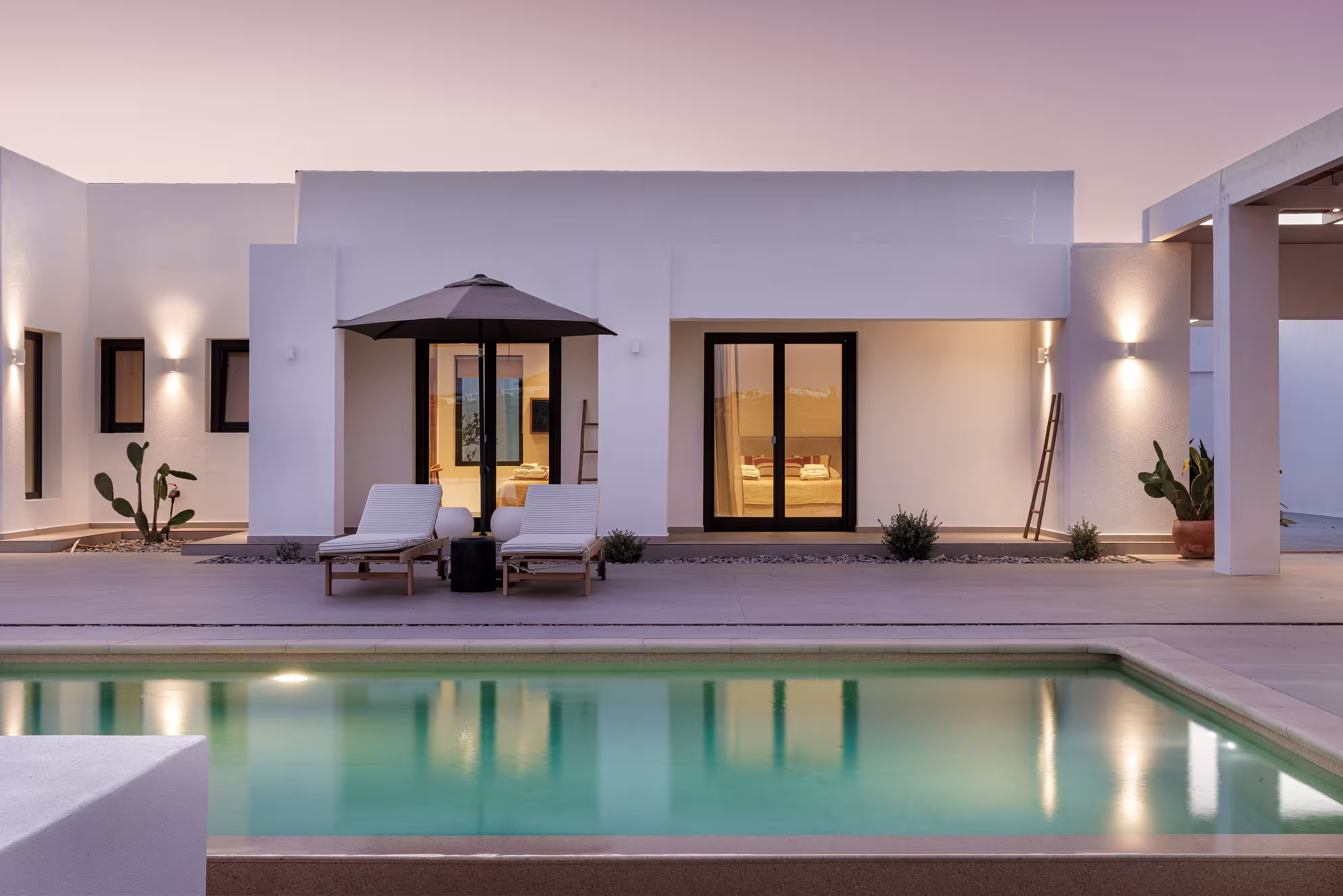 Villa Satori is a brand-new contemporary retreat set in the sought-after area of Kolymbithres, just a five-minute drive from Naoussa. Spanning approximately 200 sq.m., the villa blends elegant Cycladic architecture with warm, boho-chic interiors, featuring natural textures and soft finishes that create a relaxed yet refined island atmosphere. The property offers four beautifully designed bedrooms, generous open-plan living and dining areas, and a fully equipped kitchen, all designed for comfort, privacy, and effortless living.