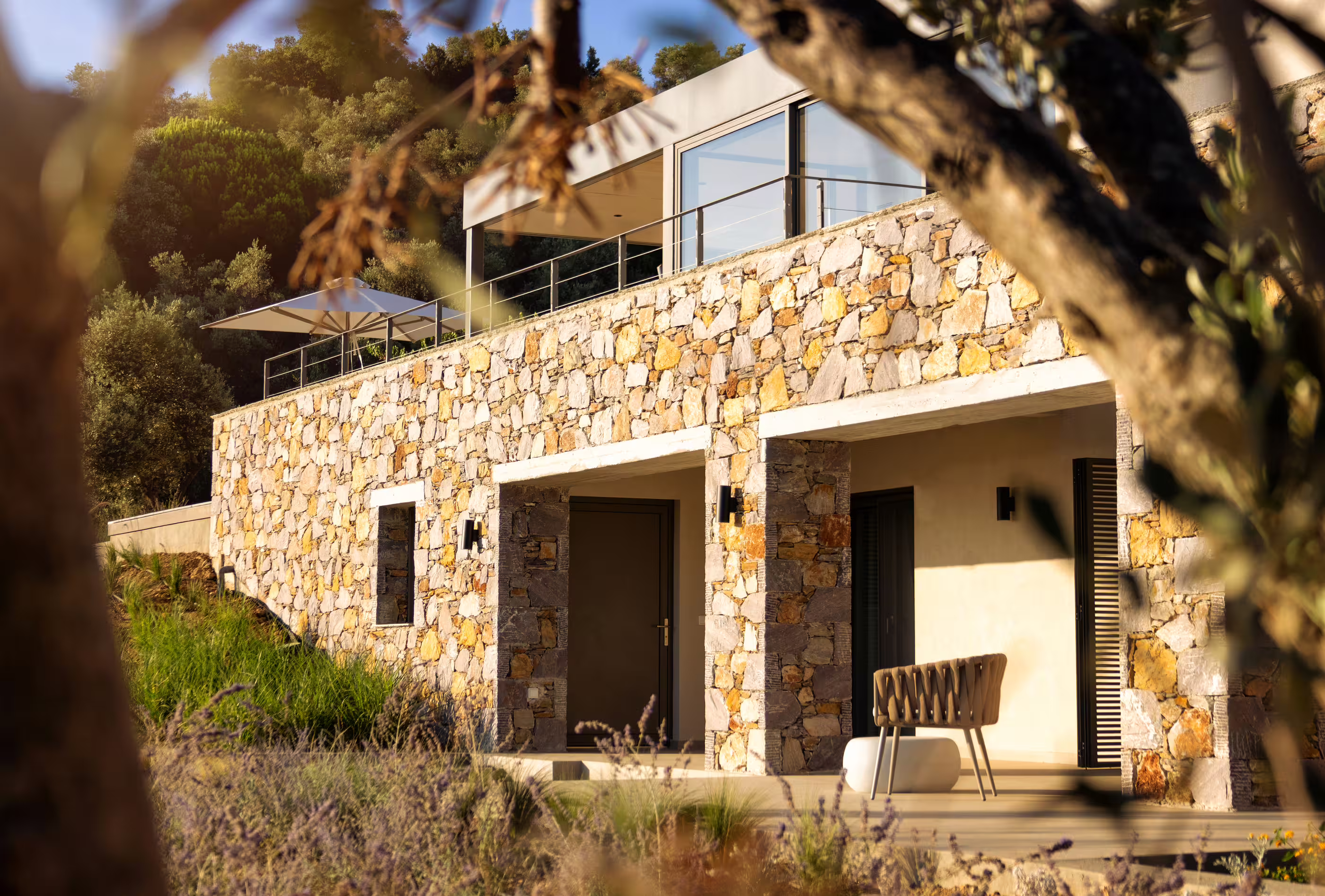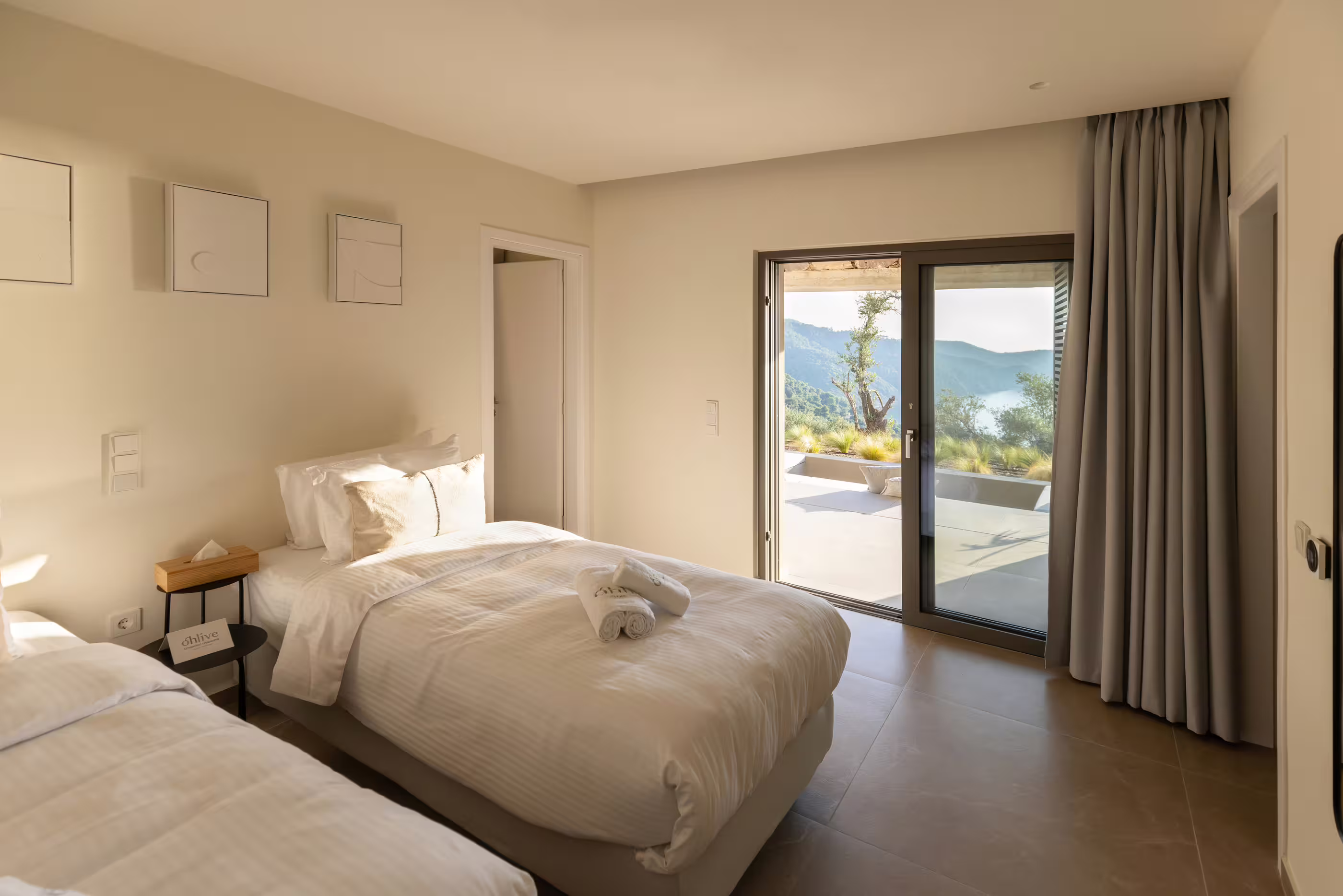 la Valley III is a contemporary 4-bedroom retreat designed by 3H Architects, surrounded by olive trees and pine forests with sweeping Aegean views. Created for families and friends, it features connecting master and junior bedrooms, open-plan interiors, and seamless indoor-outdoor living. Floor-to-ceiling windows flood the villa with natural light, while the spacious terraces, gas BBQ, and 9 m infinity pool invite relaxation at every hour. Set within a peaceful 1,000 m² estate near Kechria and Ligaries beaches, the villa offers daily concierge service, thoughtful amenities, and complete privacy, creating an effortless blend of modern comfort and the island’s untamed natural charm.