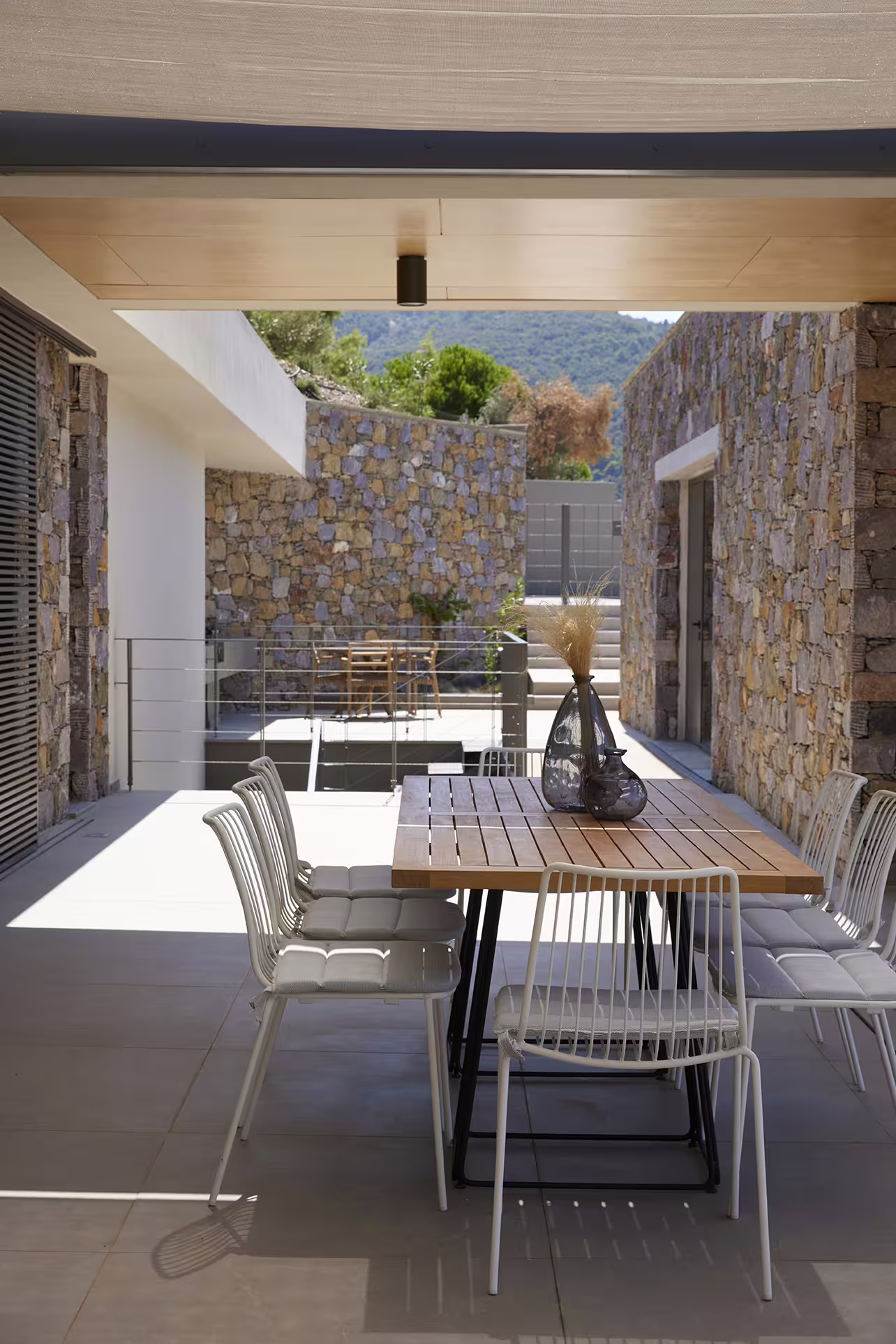 - Spacious terraces with sunbeds and lounge seating