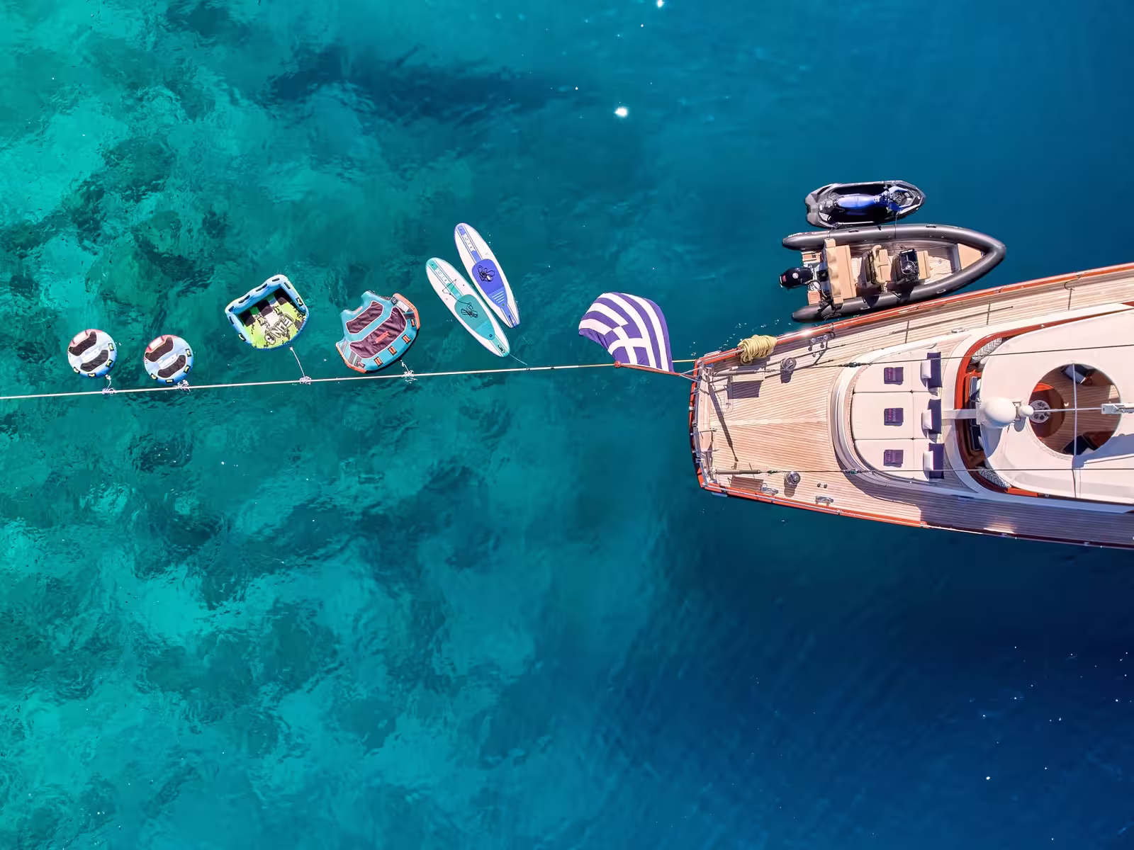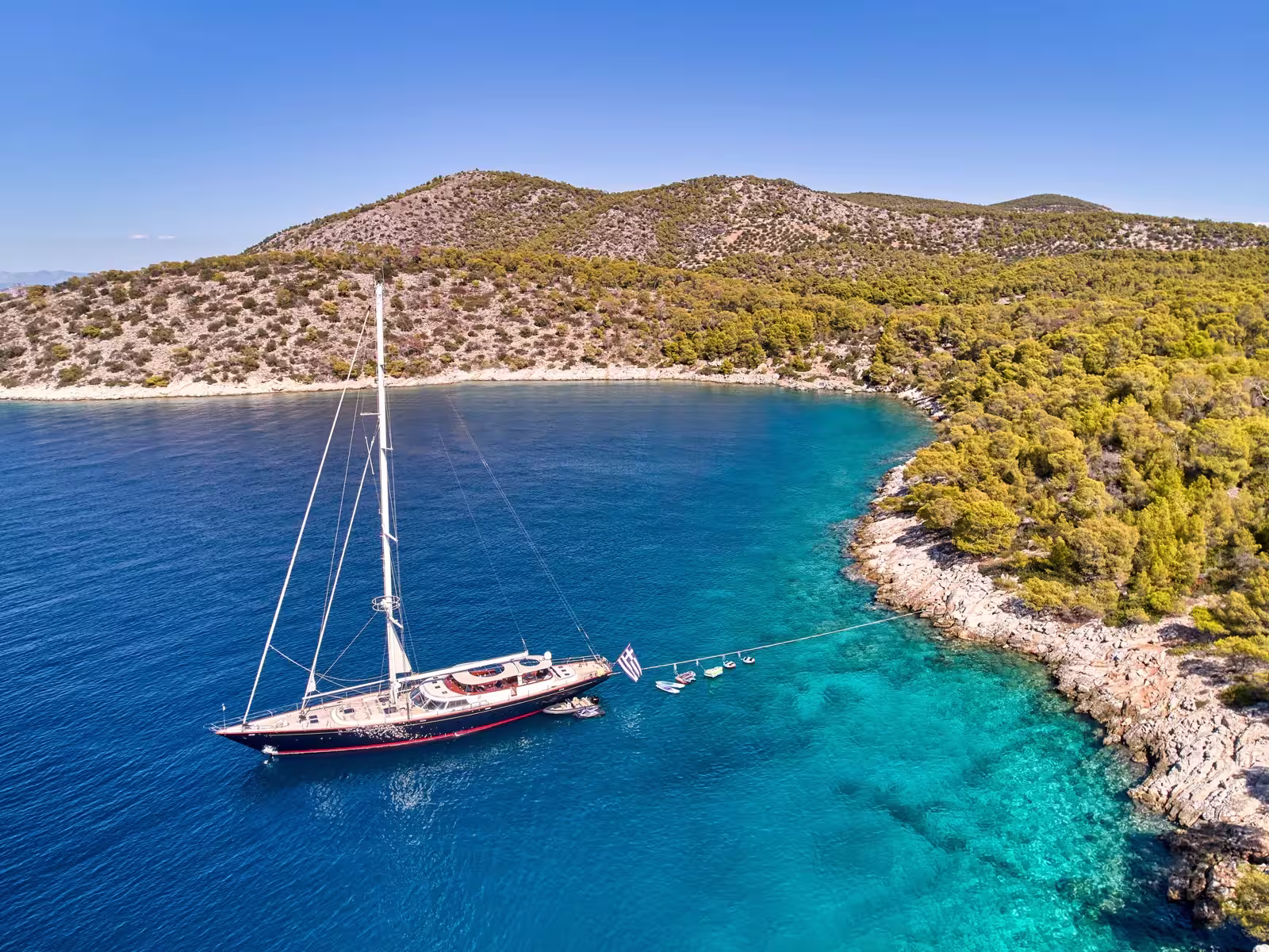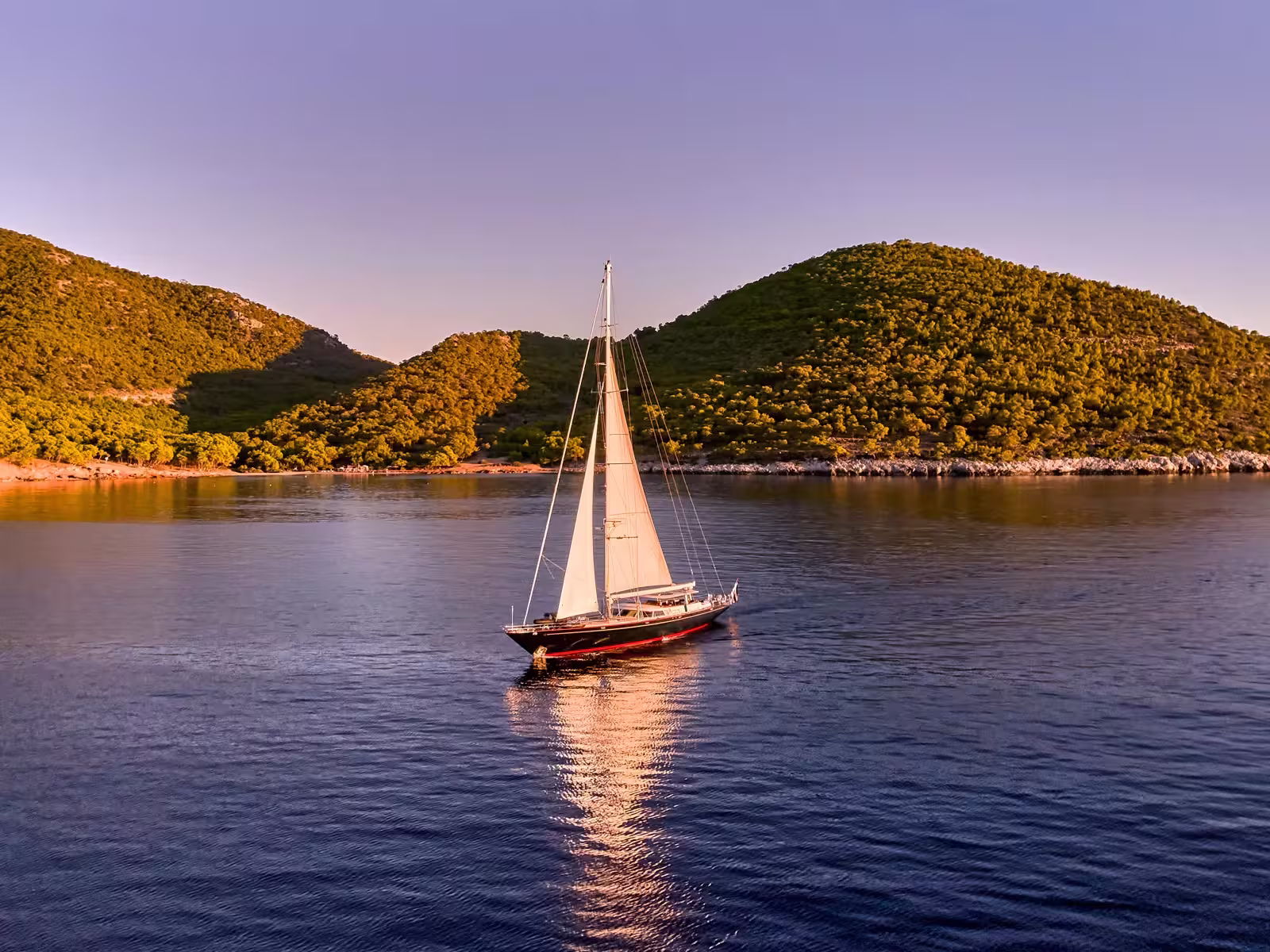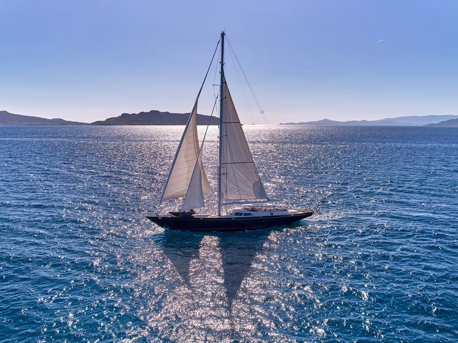 Gitana is a 35.97m Perini Navi sailing yacht that artfully combines classic pedigree with modern comfort. Designed by Guido de Groot and Ralph Lauren, her interiors are warm, elegant, and versatile – featuring a salon that transforms into a private cinema, ideal for evenings at anchor. Guests can unwind in the serene aft lounge or enjoy the thrill of the sea with a wide array of water toys, including a jet ski, paddleboards, and a DiveRib 5.5m inflatable tender. An optional chase boat is available for deeper exploration. Maintained in excellent condition since her launch in 1989 and refitted regularly, Gitana is led by a seasoned captain and a dedicated crew of six, offering a refined Mediterranean sailing experience.