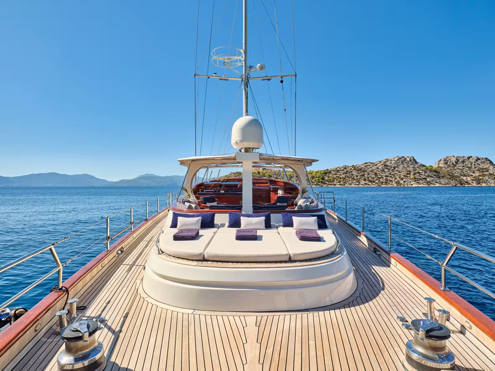 - Main Deck: Wide teak side decks offering easy access to bow or stern; safe, unobstructed passage for guests and crew, enhancing comfort during sailing or docking.