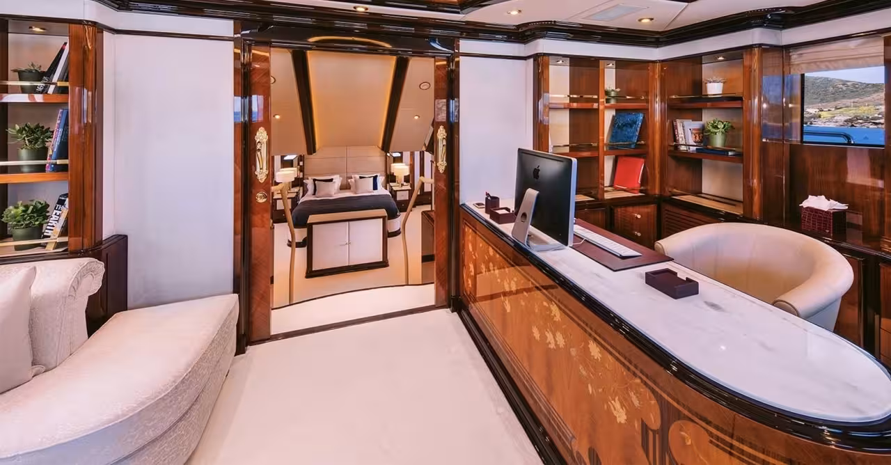 - Master Suite (Main Deck): Split-Level suite with private office and panoramic views