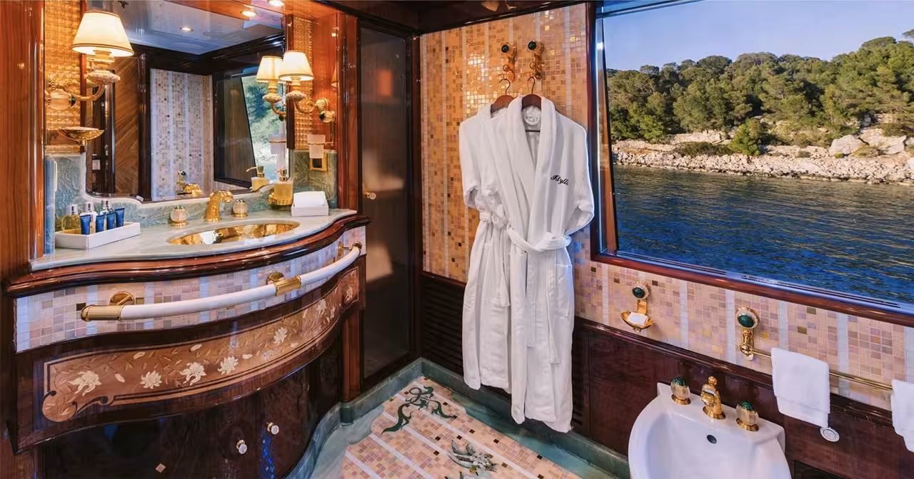 - VIP Cabin (Upper Deck): King-sized bed, private seating area, and dressing room
