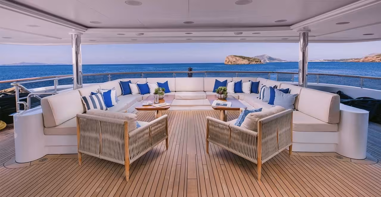 - Main Deck Aft: Lounge Area, Access to Swim Platform
