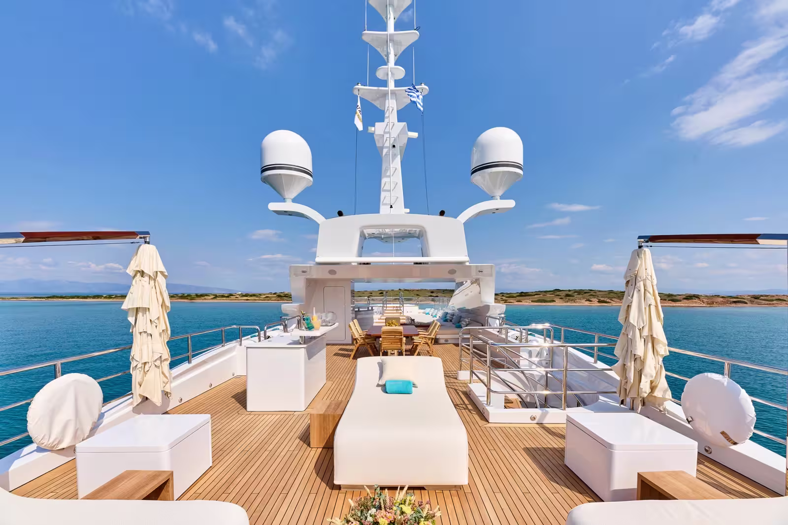- Foredeck: Forward‑facing decks including a Portuguese deck near the wheelhouse, fitted with lounge seating