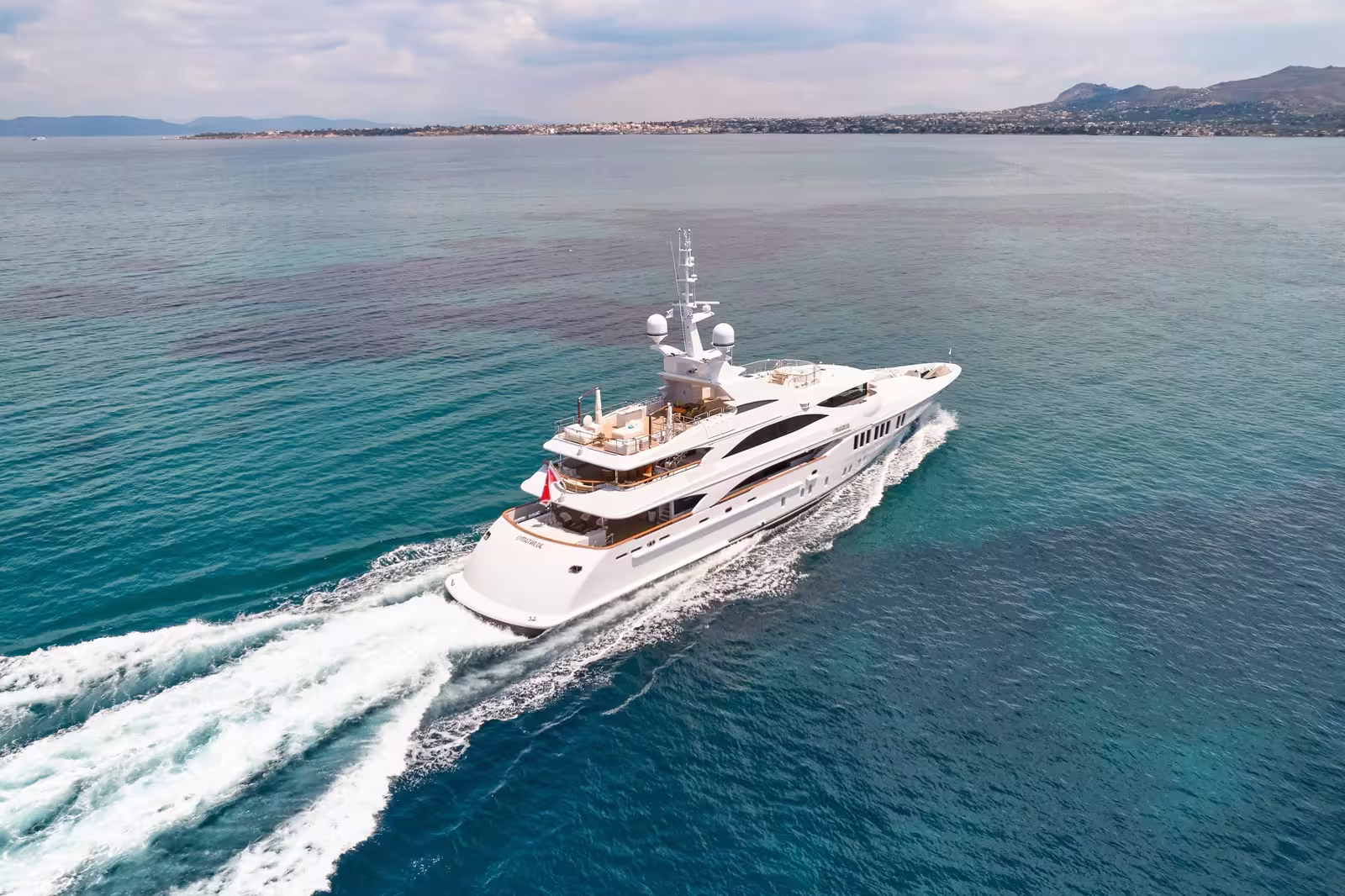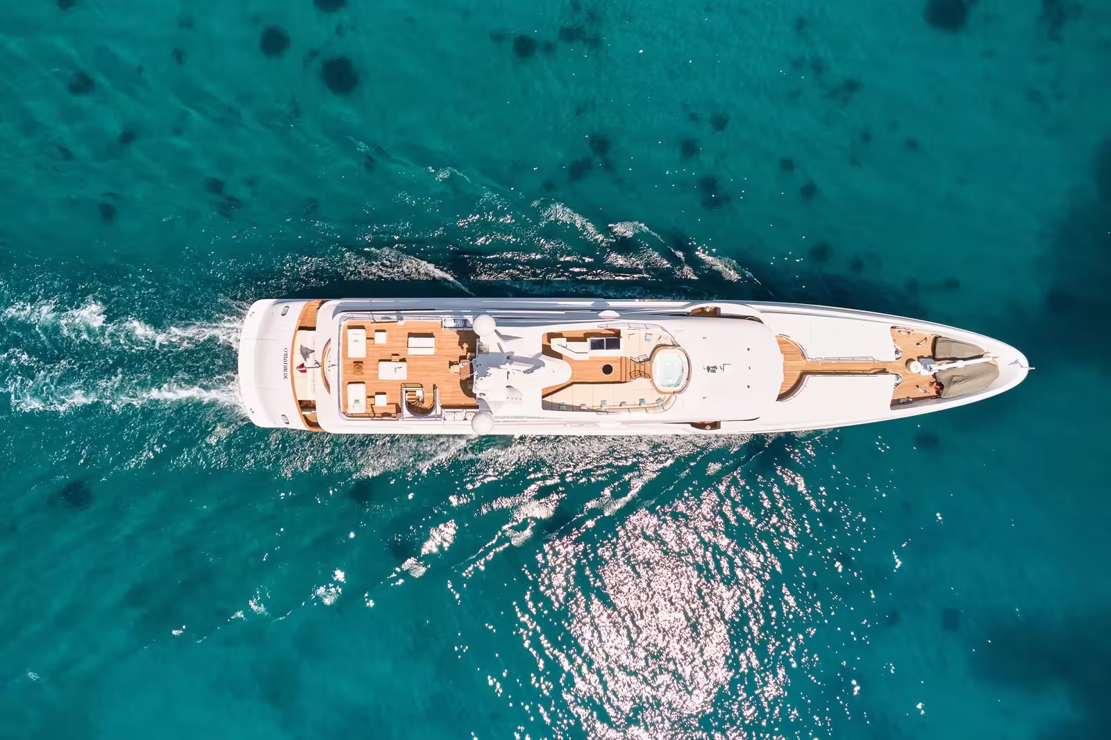 Built by Golden Yachts in 2018 and freshly repainted in 2023, O’Mathilde is a 56m tri-deck yacht offering spacious design, refined comfort, and modern elegance. She accommodates up to 12 guests in seven luxurious staterooms, including a panoramic Master Suite, a VIP on the upper deck, three doubles, and two twins – all with ensuite facilities. Her interiors feature floor-to-ceiling windows in the main salon and cutting-edge AV systems throughout. Outside, guests enjoy expansive deck spaces, a sundeck Jacuzzi, and a fully equipped open-air gym overlooking the sea. With zero-speed stabilizers, a broad selection of water toys, and a highly experienced crew of 13 led by a seasoned captain, O’Mathilde offers a seamless and elevated charter experience across the Mediterranean.