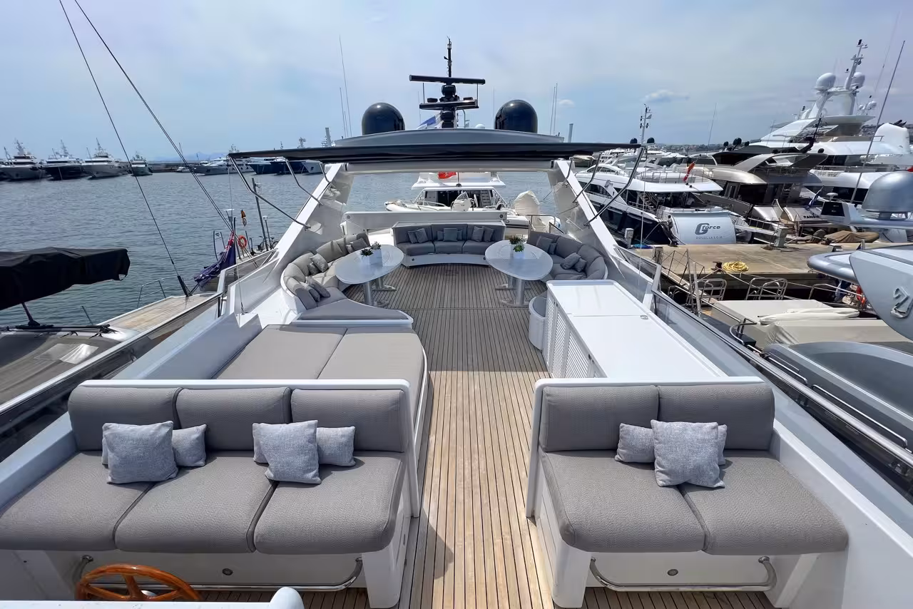- Flybridge: Open area with seating and sunbathing spaces
