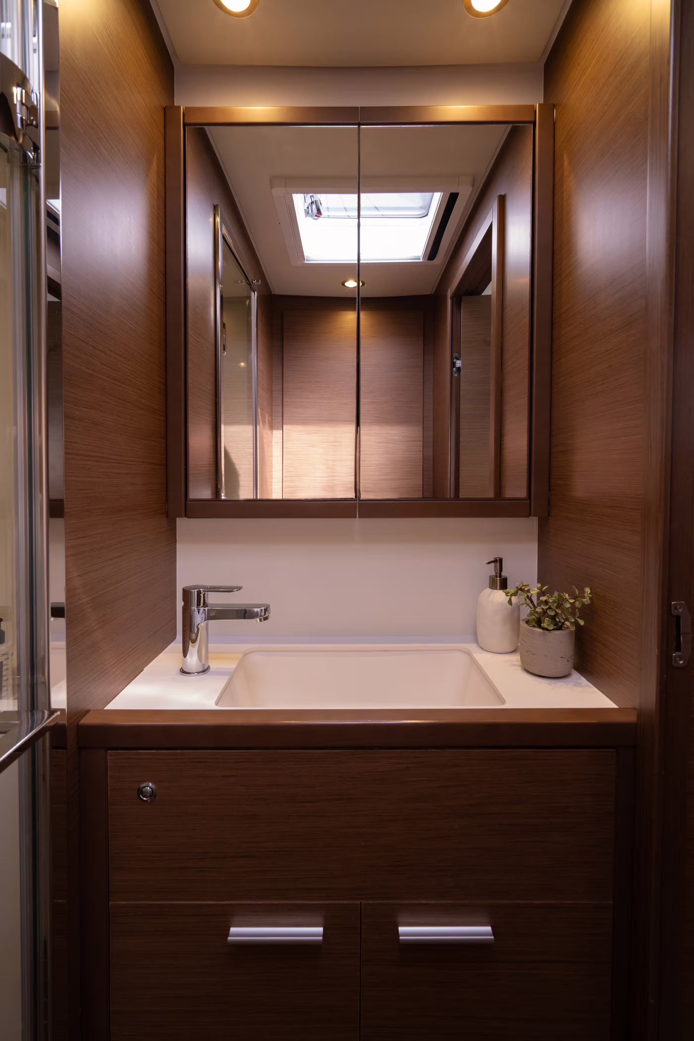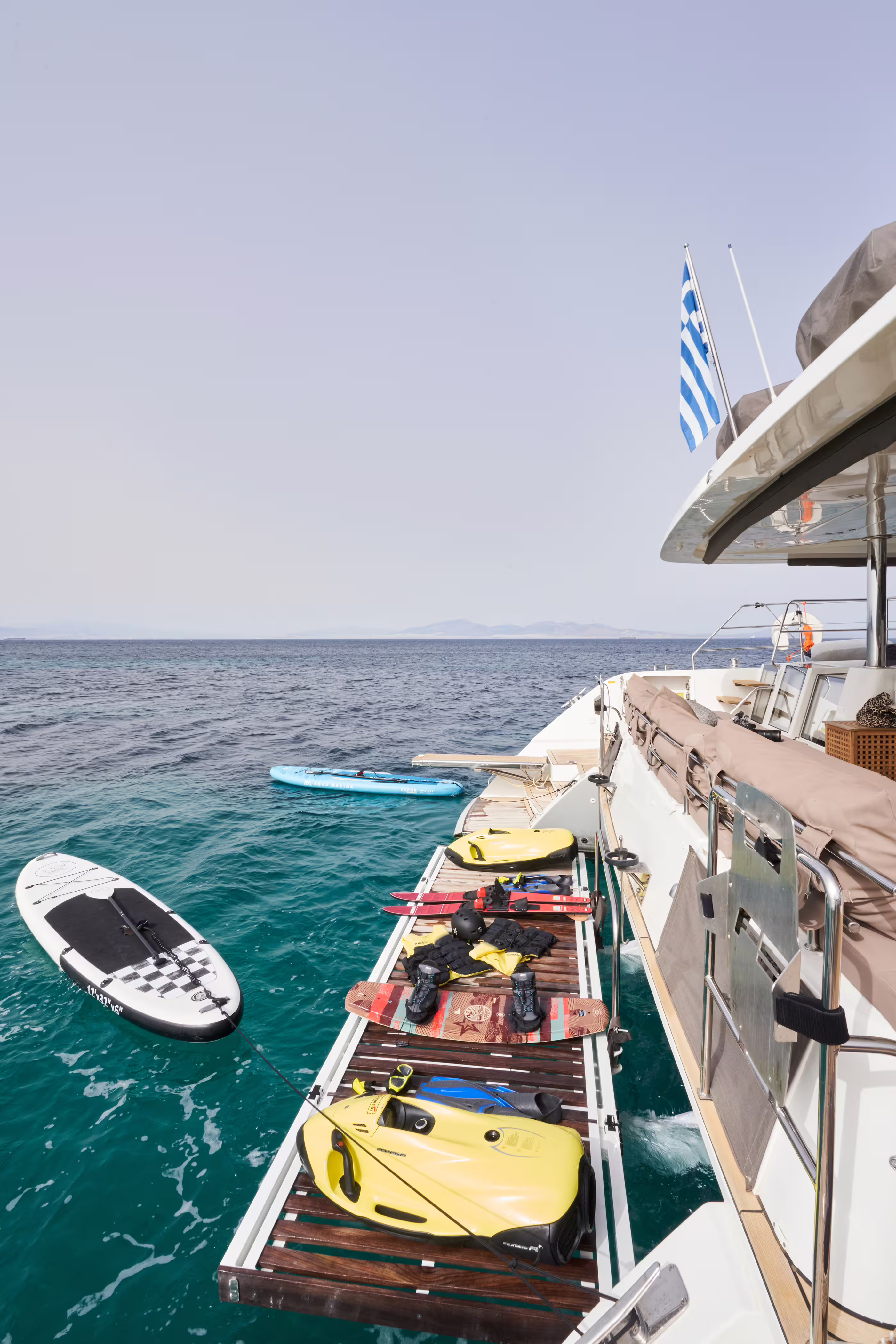 Either tasting delicacies prepared for you in the spacious dining area, trying one of the many water sports, or simply lounging under the sun, Whitesand is sure to sway you just like a wave! Equipped with impressive entertaining facilities that makes her the ideal charter yacht for socializing and entertaining with family & friends. Crewed with dedicated professionals, each of the three crew is eager to combine their expertise and skills in order to transform your stay from a mere holiday, to an unforgettable experience.