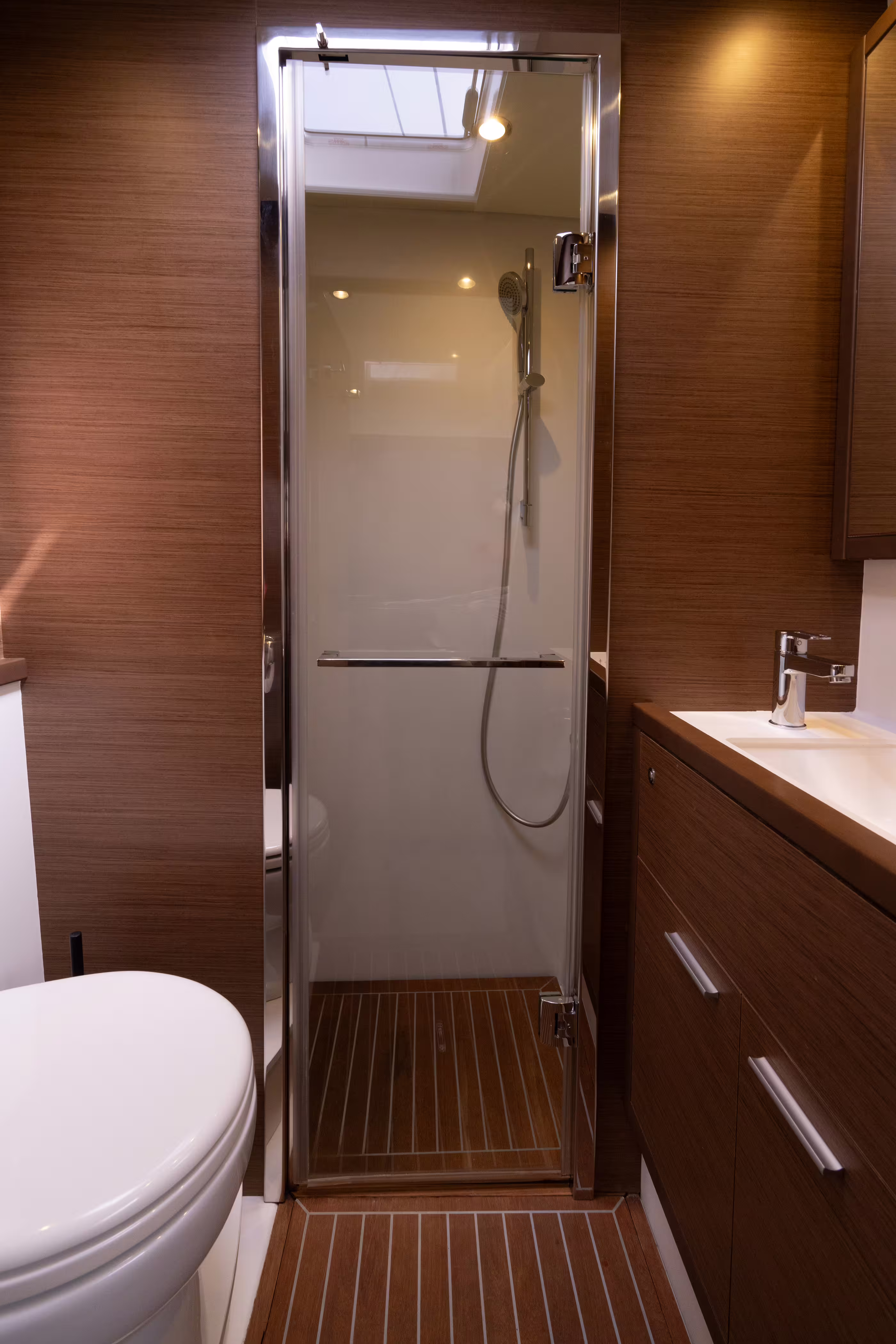 - Flybridge: Twin helm stations, seating, and panoramic views